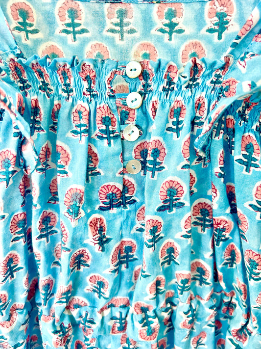 Adult Jumpsuit - Blue with Coral Flower