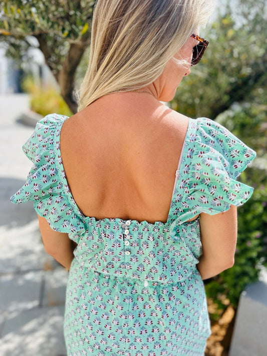 Adult Jumpsuit - Green with Pink Flower